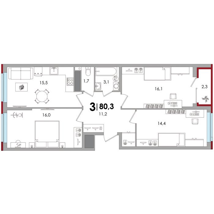Площадь от 79.0 м2