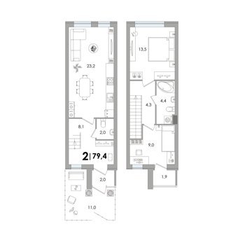 Площадь от 79 м2