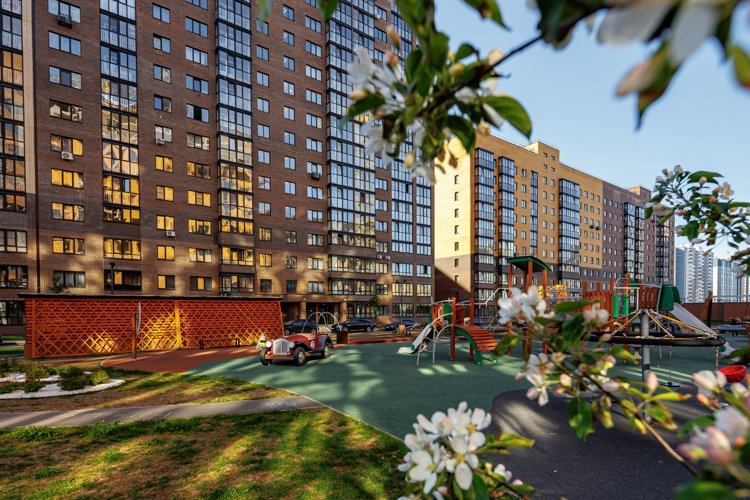 Дворовая территория выполнена в концепции двор-парк, где более 50% пространства занимает многоуровневое озеленение. По сравнению с обычным, оно даёт ощущение объёма и изобилия, формирует комфортную экологичную среду с заботой о здоровье жителей.
