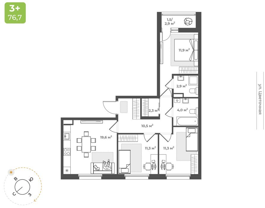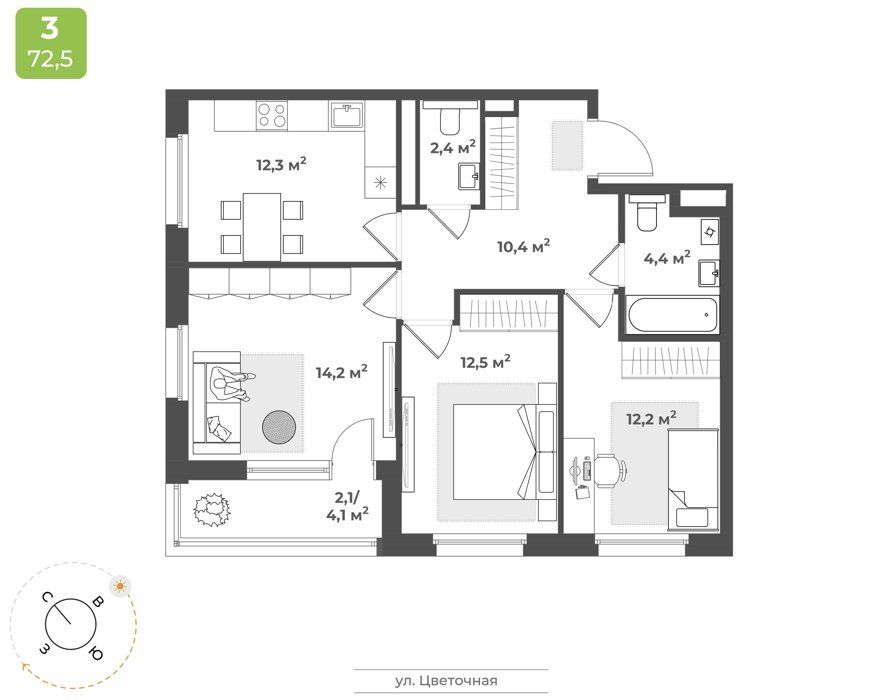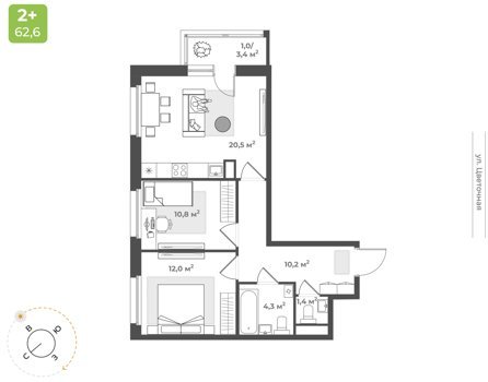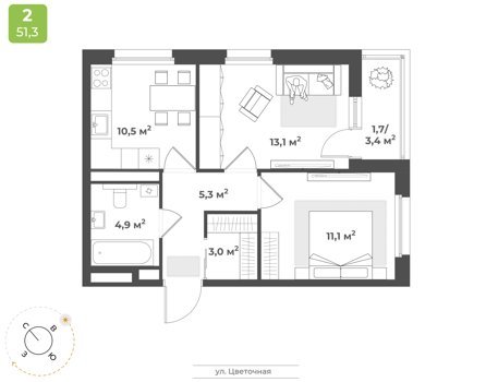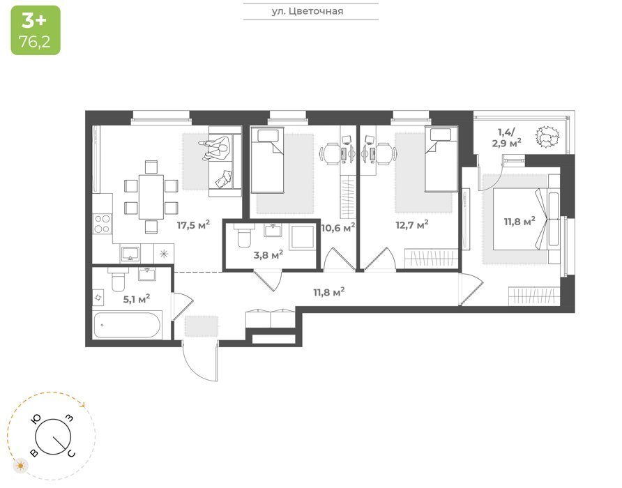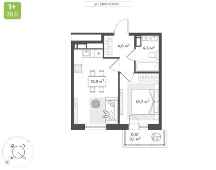 В «Новой Твери» спроектировано более 30 видов планировочных решений от компактных студий до просторных семейных 3-комнатных квартир с мастер–спальней.
