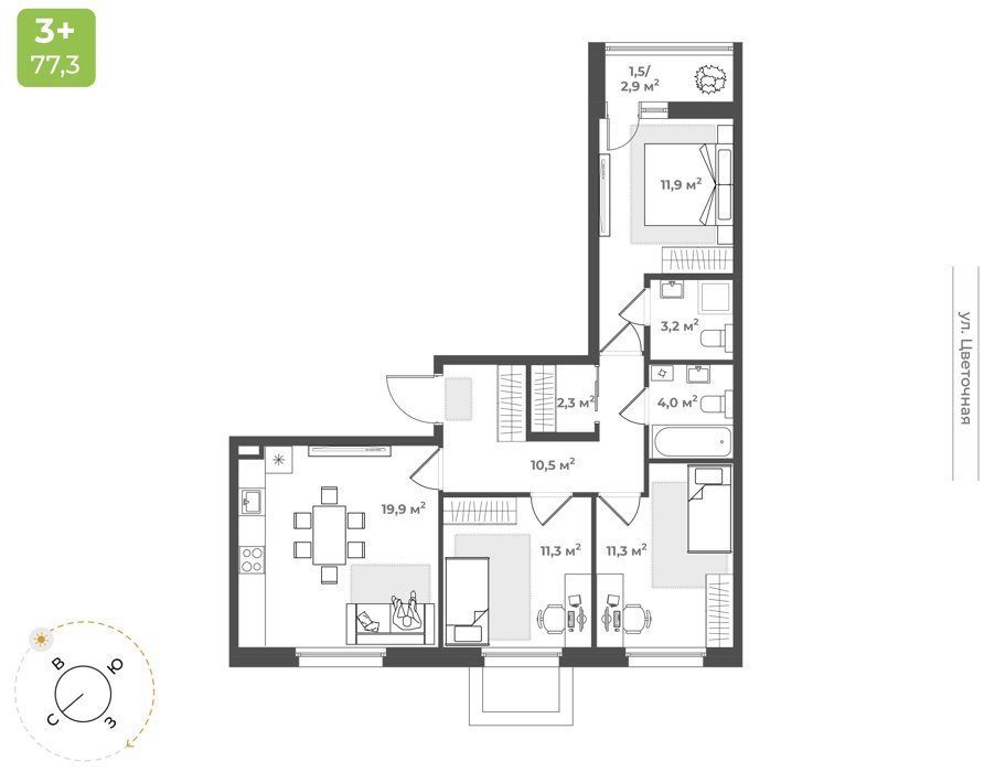 Бесшумный скоростной лифт доставит вас на нужный этаж, а понятная навигация сопроводит гостей до квартиры. На первых этажах будут предусмотрены просторные помещения для хранения колясок, а также лапомойки.