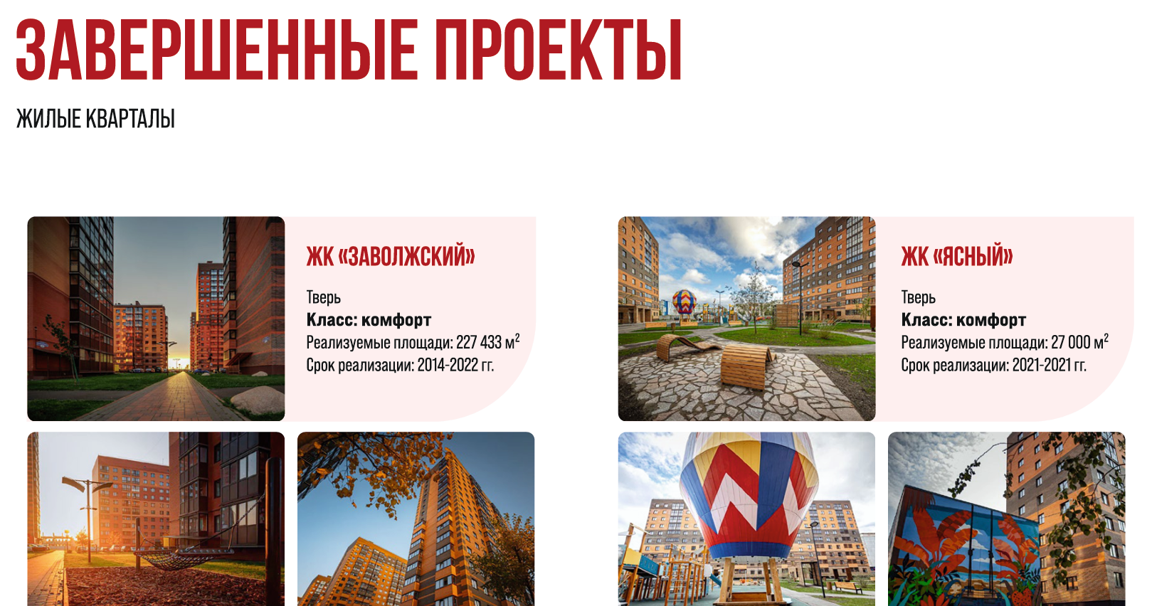 Множество законченных проектов не только в Твери ,но и в других городах России.