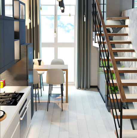 Лофты на последнем этаже с потолками высотой 5,2 м и свободной планировкой — это возможность насладиться простором, эстетикой и свободой, создавая стильные интерьеры, наслаждаясь потрясающими видами на город.
