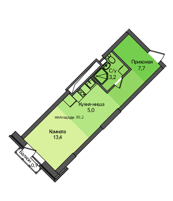 Отсутствие стен и перегородок даёт возможность гибко расположить мебель и зонировать пространство по своему вкусу. Больше места — больше простора для жизни!